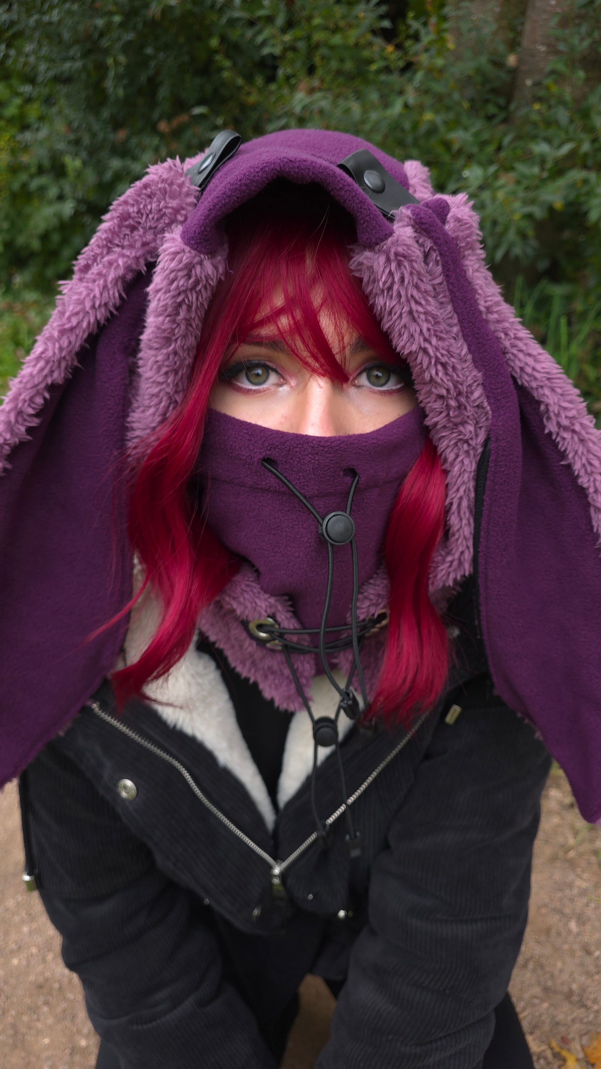 Bunny Hood & Balaclava – Kapuze mit Hasenohren, Kette abnehmbar und 2 versteckte ReißverschlussTaschen an jedem Ohr 🤫 mit warmen Fleece Schal-Schlauch.