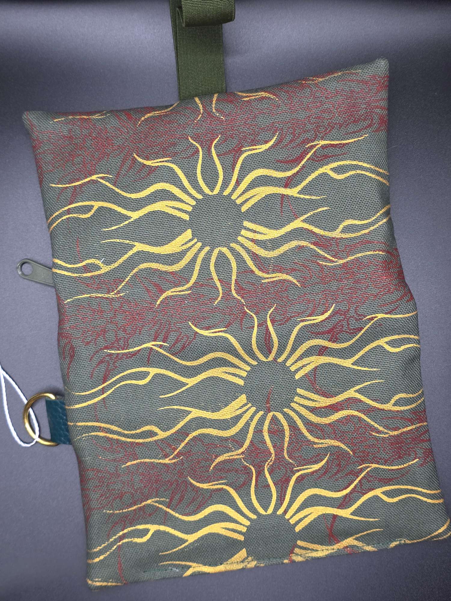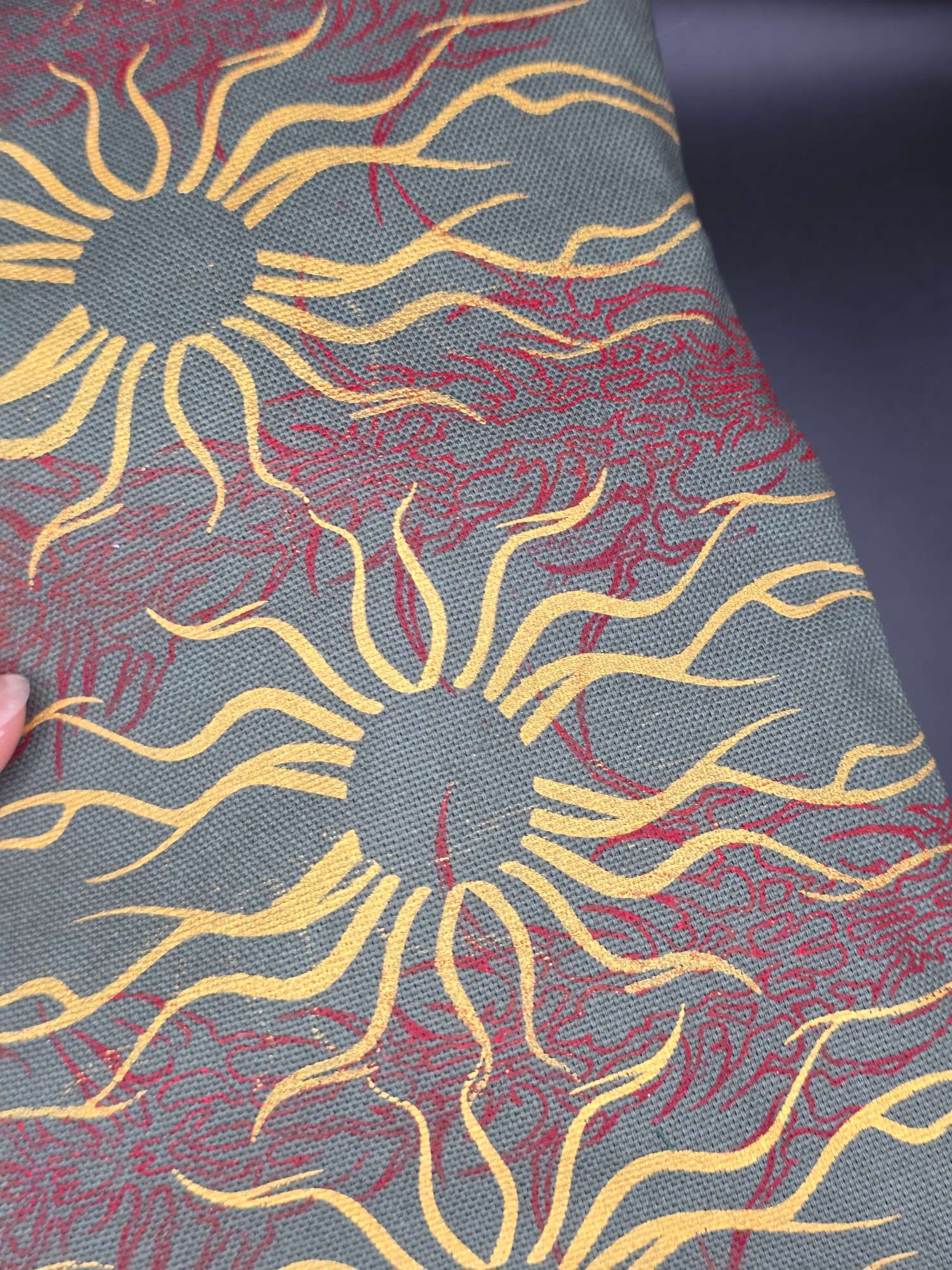 ➡️ Außenstoff: 100% Baumwoll-Canvas, handgefärbt und mit eigenem Siebdruck veredelt – robust und farbecht